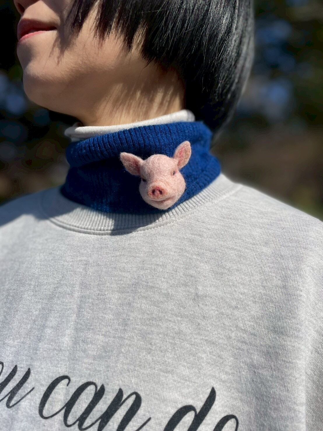 羊毛フェルトで作ったコブタブローチです。このブローチは、男女問わず幅広く活躍するように、リアルでありながら愛らしいデザインが特徴で、どんなファッションにもワンポイントとして、胸元の相棒となるアクセサリーです。