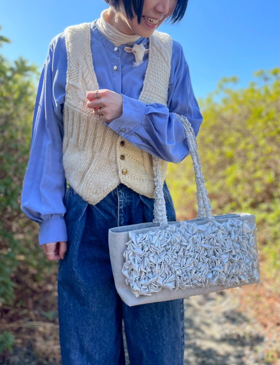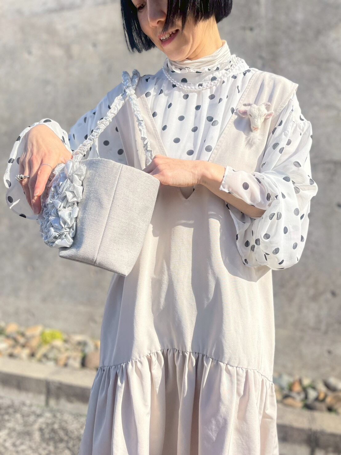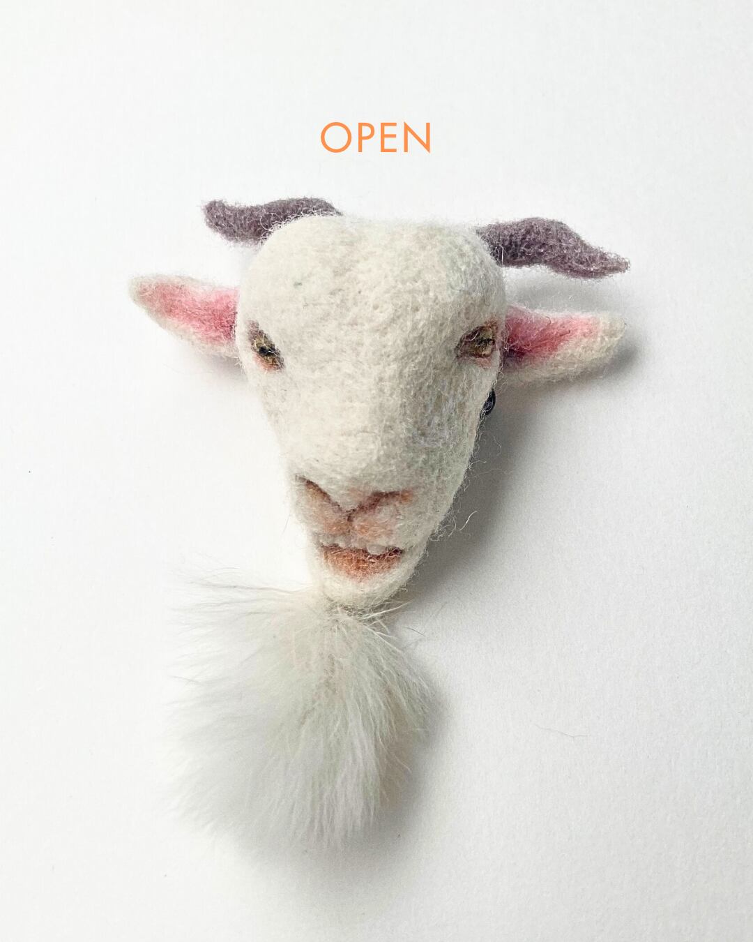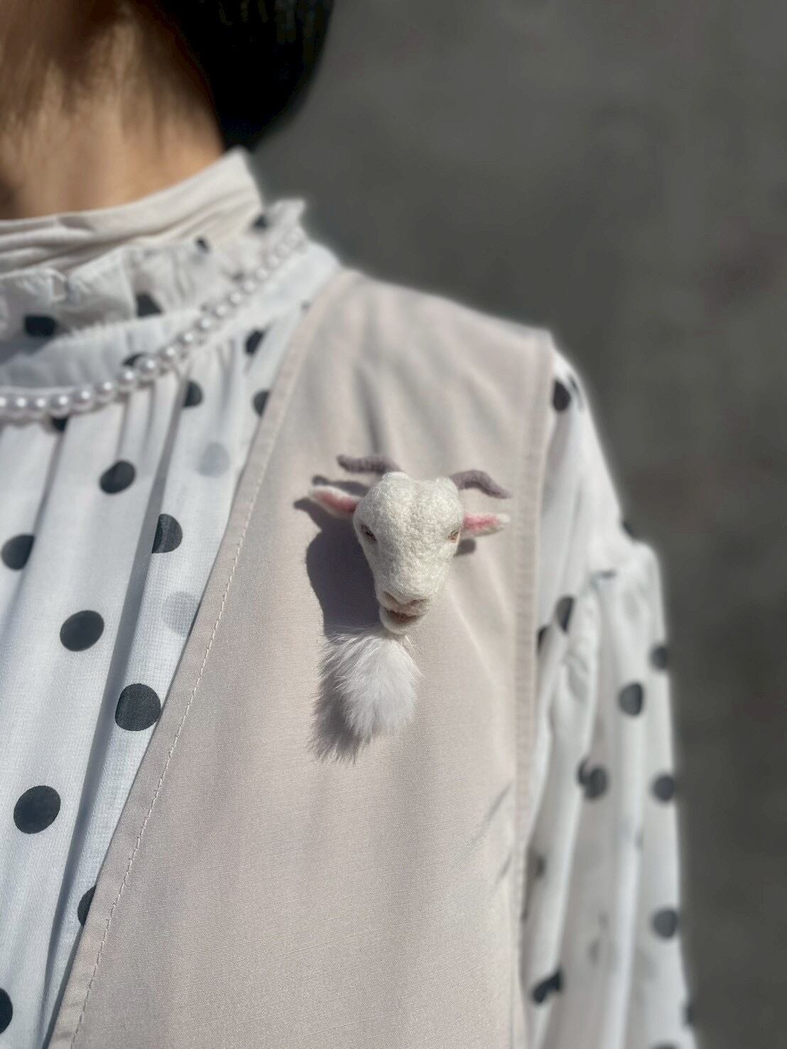 羊毛フェルトで作ったヤギブローチです。このブローチは、聡明な目つきのヤギのデザインが特徴で、男女問わずカジュアルなファッションから特別な日のおしゃれまで幅広く活躍します。胸元を引き立てる愛らしい存在として、またプレゼントにも喜ばれること間違いなしのアイテムです!