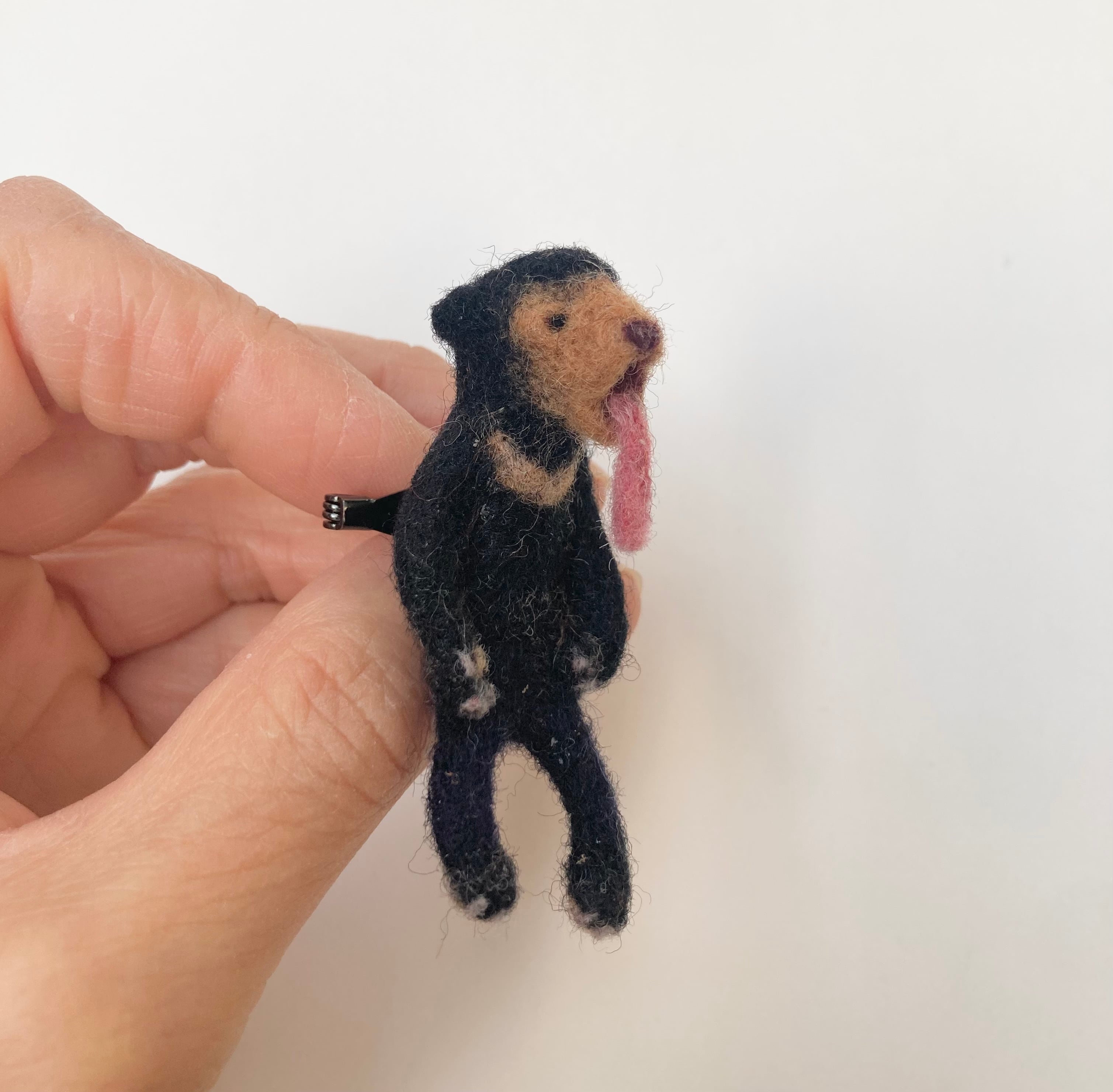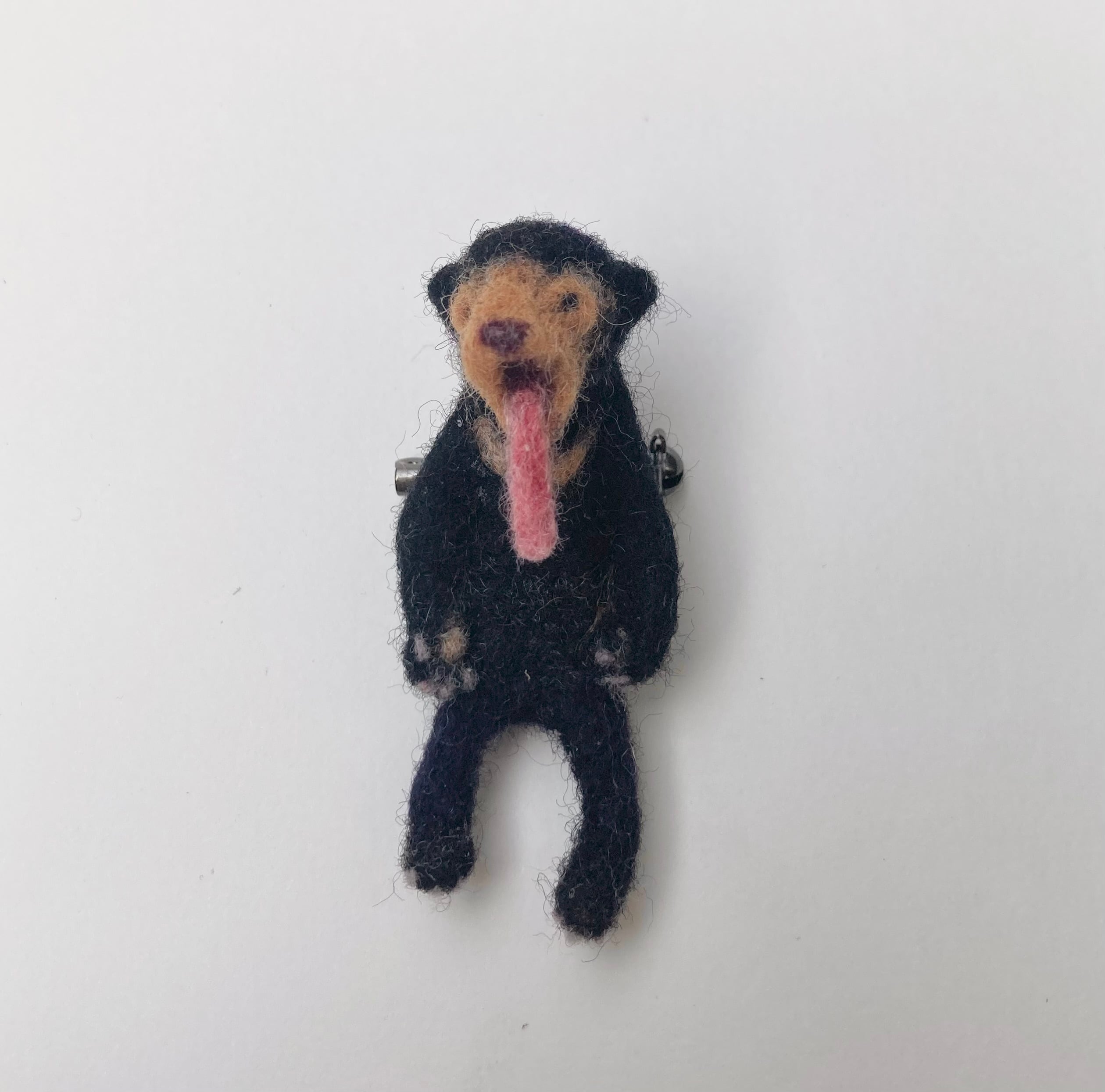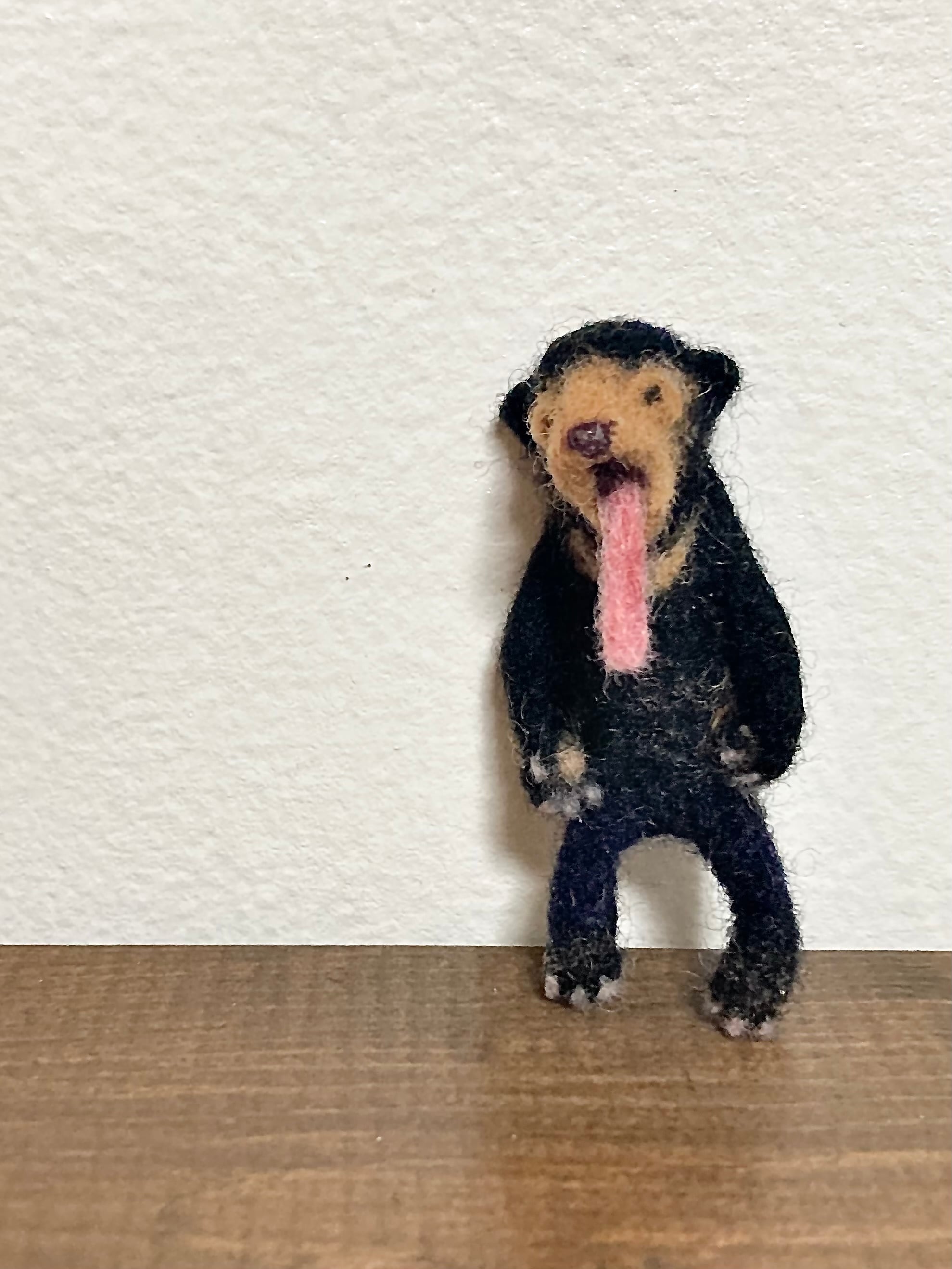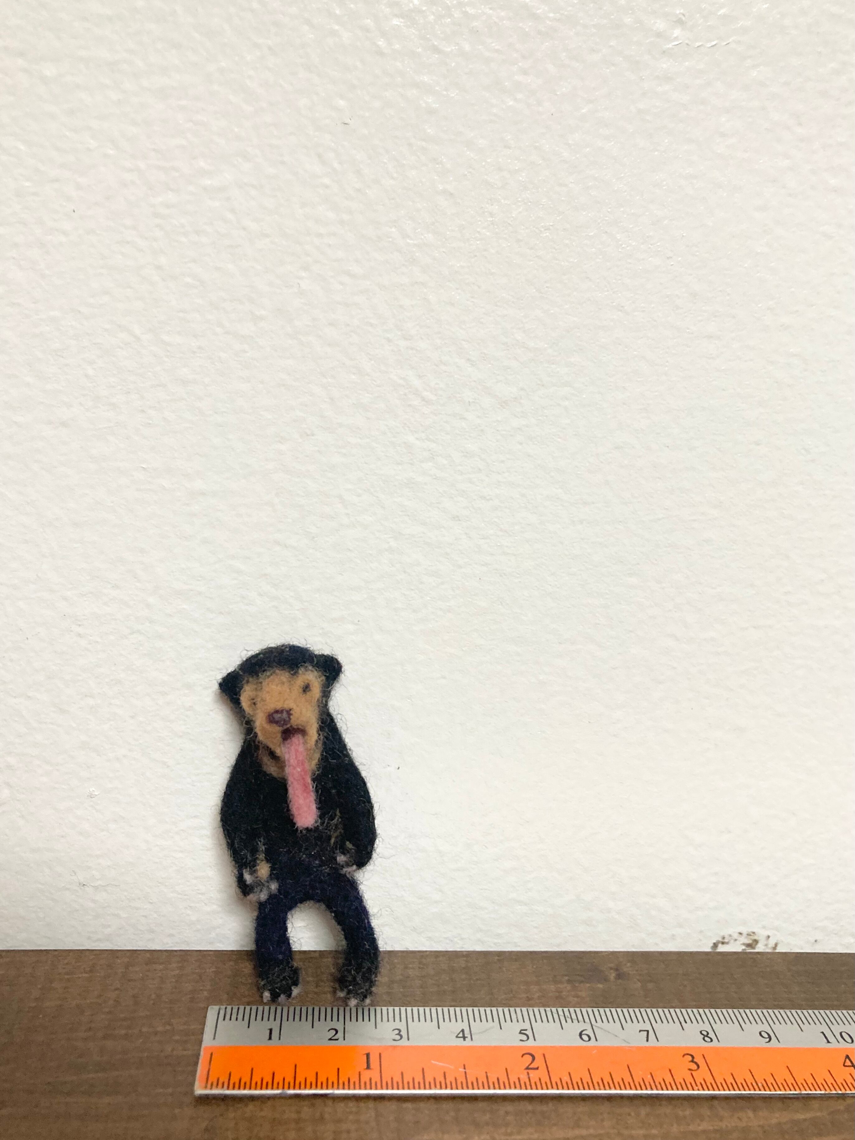 ひょうきんな、舌をベローンと出したマレーグマをモチーフにした羊毛ブローチです。ユニークな存在感を放ち、シンプルなコーディネートに遊び心を加えるアイテムです。